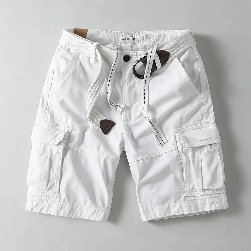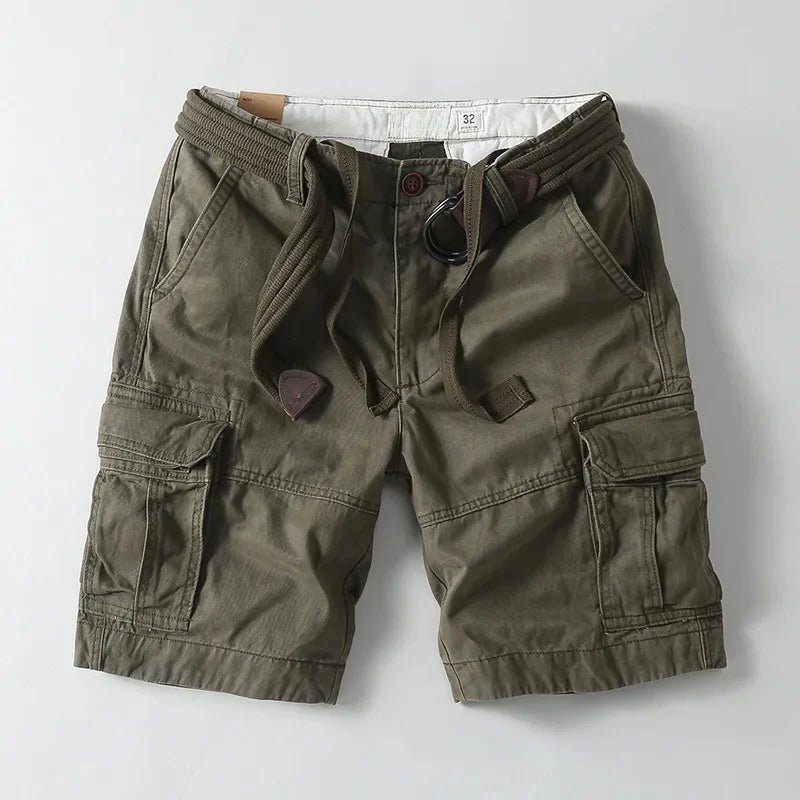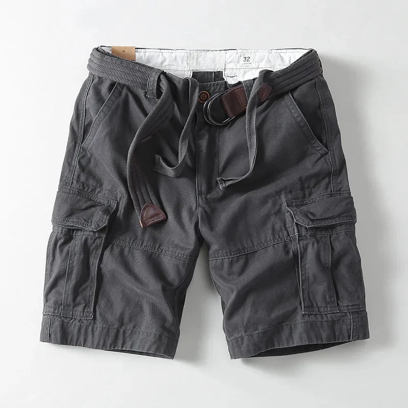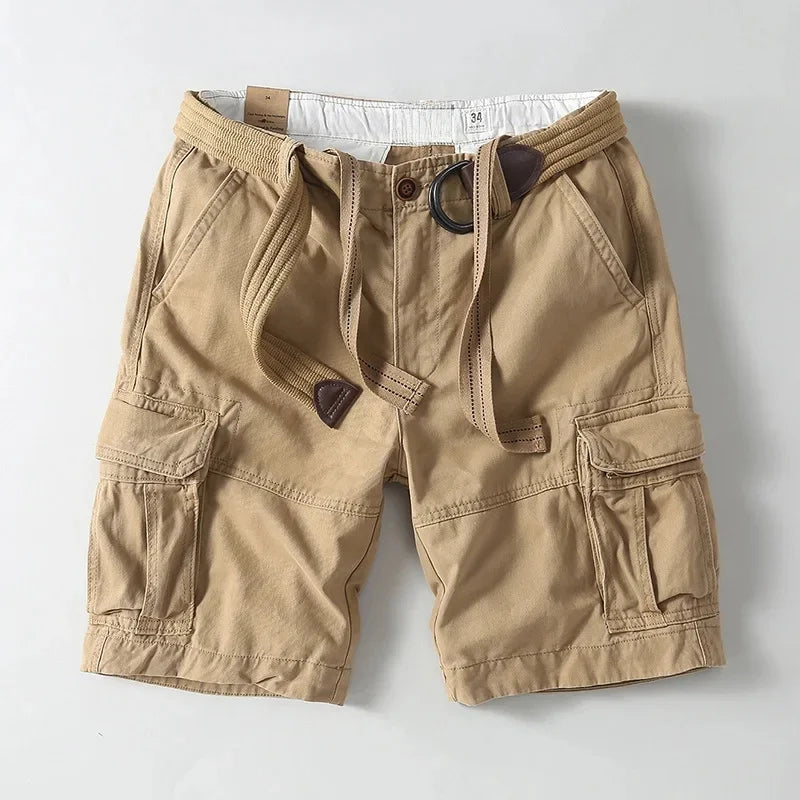 Rugged cargo shorts with a built-in canvas belt, spacious pockets, a soft cotton feel, and a comfortable relaxed fit. Made for movement and ultimate functionality.