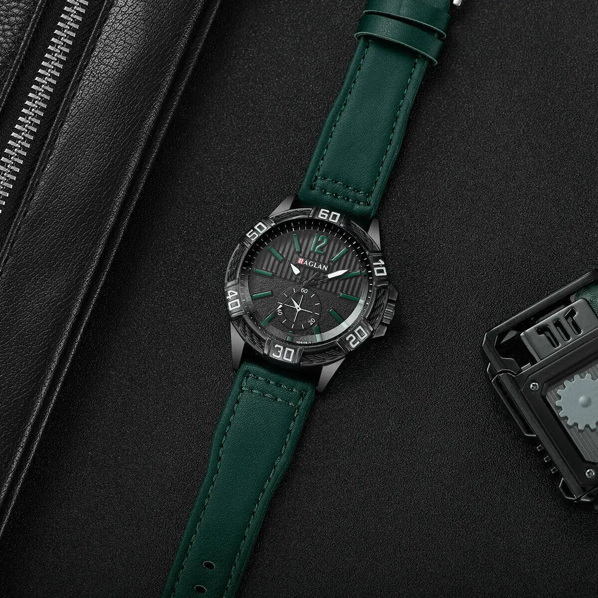 Built for men who demand durability, this rugged 44mm watch features a tough alloy casing and a genuine leather band that only gets better with wear. Bold, masculine, and made to last.